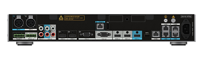XT702 C采用HDBaseT接口,徹底改變了傳統(tǒng)視頻會議終端通過電源線、數(shù)據(jù)線、控制線與攝像機(jī)互連的模式,僅用一根網(wǎng)線即可同時傳輸三種信號,大大降低設(shè)備部署的難度,提高部署效率,在保證傳輸距離的同時使得會議室的線纜部署更簡便、更規(guī)整。